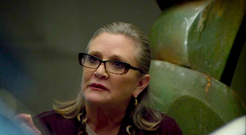 Carrie's not only a terrific actress. She's also a skilled writer who does punch-up on screenplays. She asked if she could freestyle. Naturally we indulged her.