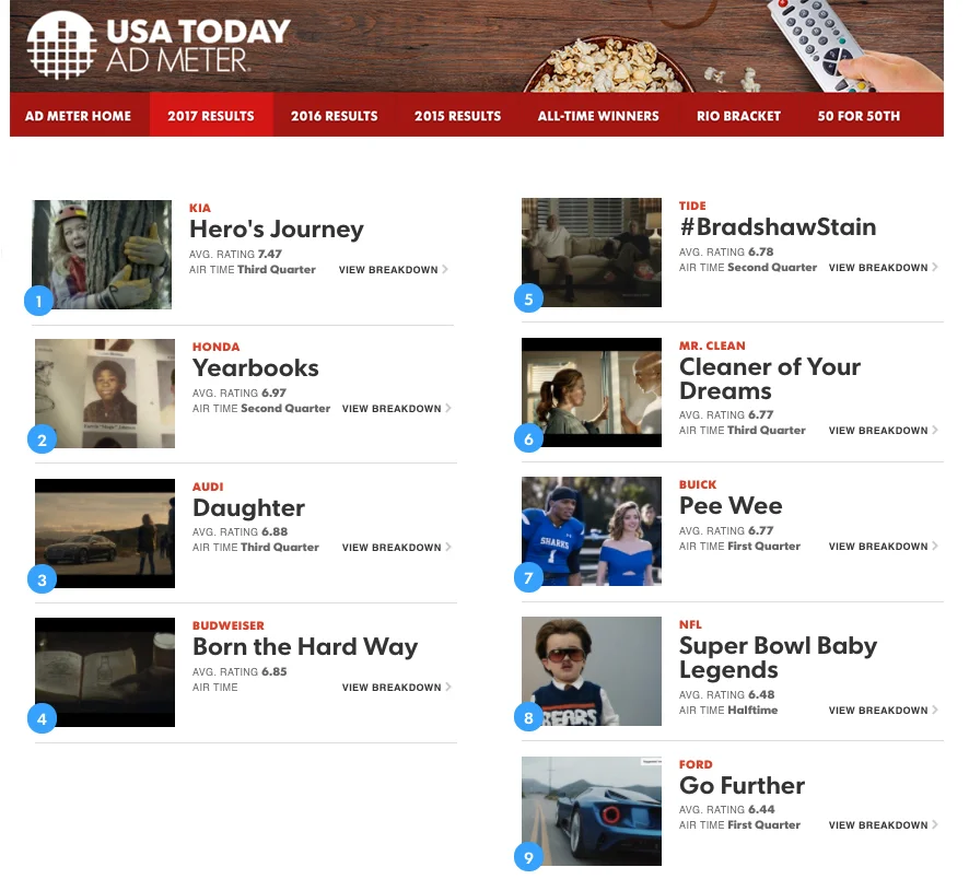 Ranked #9 by USA TODAY’s Super Bowl Admeter as well as making top ten lists for USA Today, The Verge and Time Magazine.
