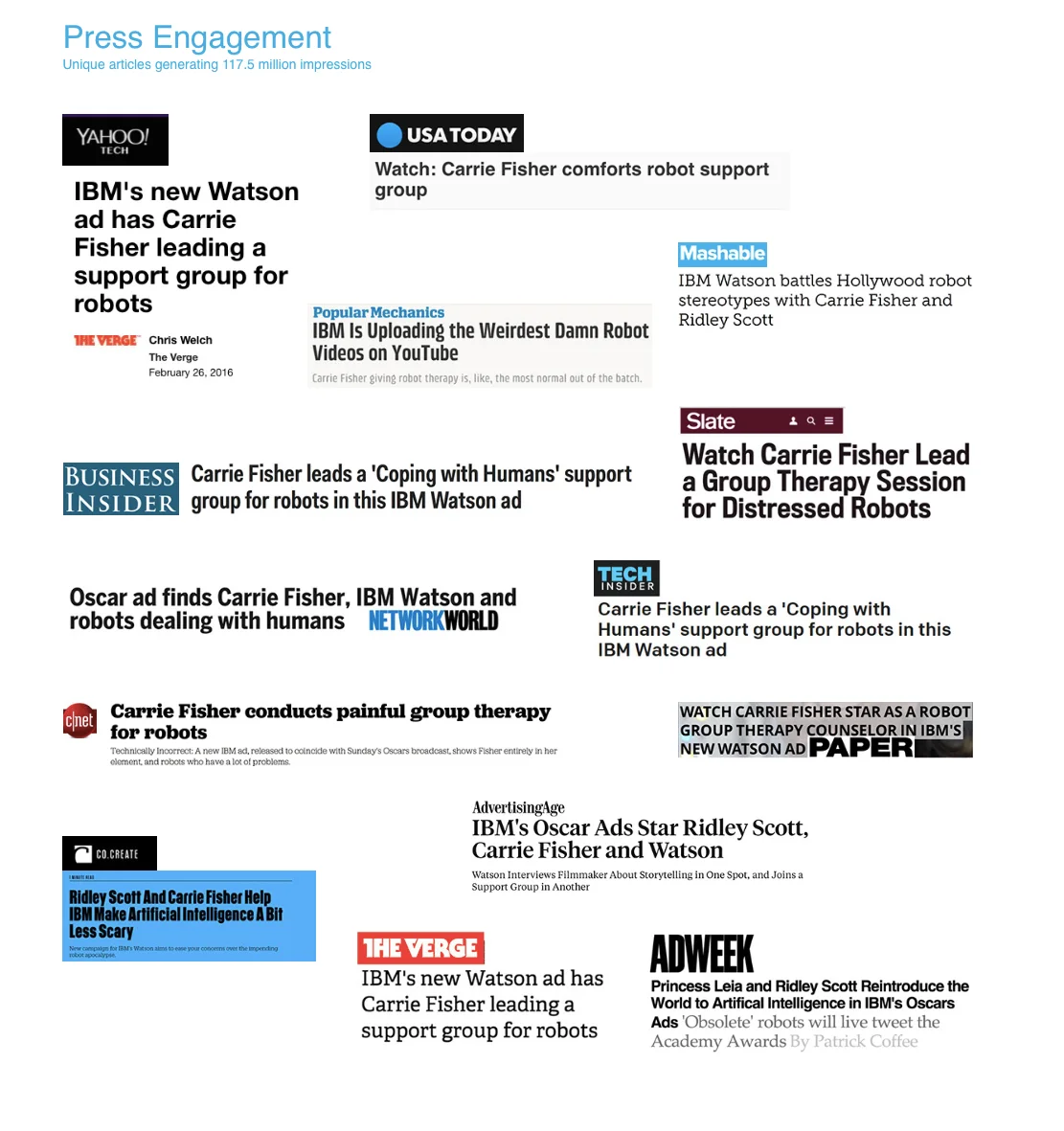 "Support Group" is the most viewed IBM commercial in history. It ran during the Oscars. Carrie Fisher in the role she was born to play—A psychoanalyst who runs a support group for robots.