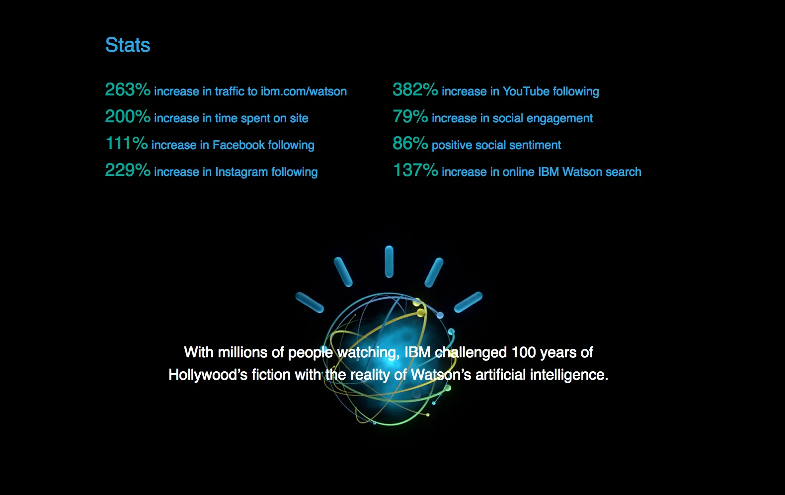 Online we conducted one-on-one therapy sessions with the bots. We aligned their personal traumas with Watson's various aptitudes. And even let viewers play with Watson's API's online.