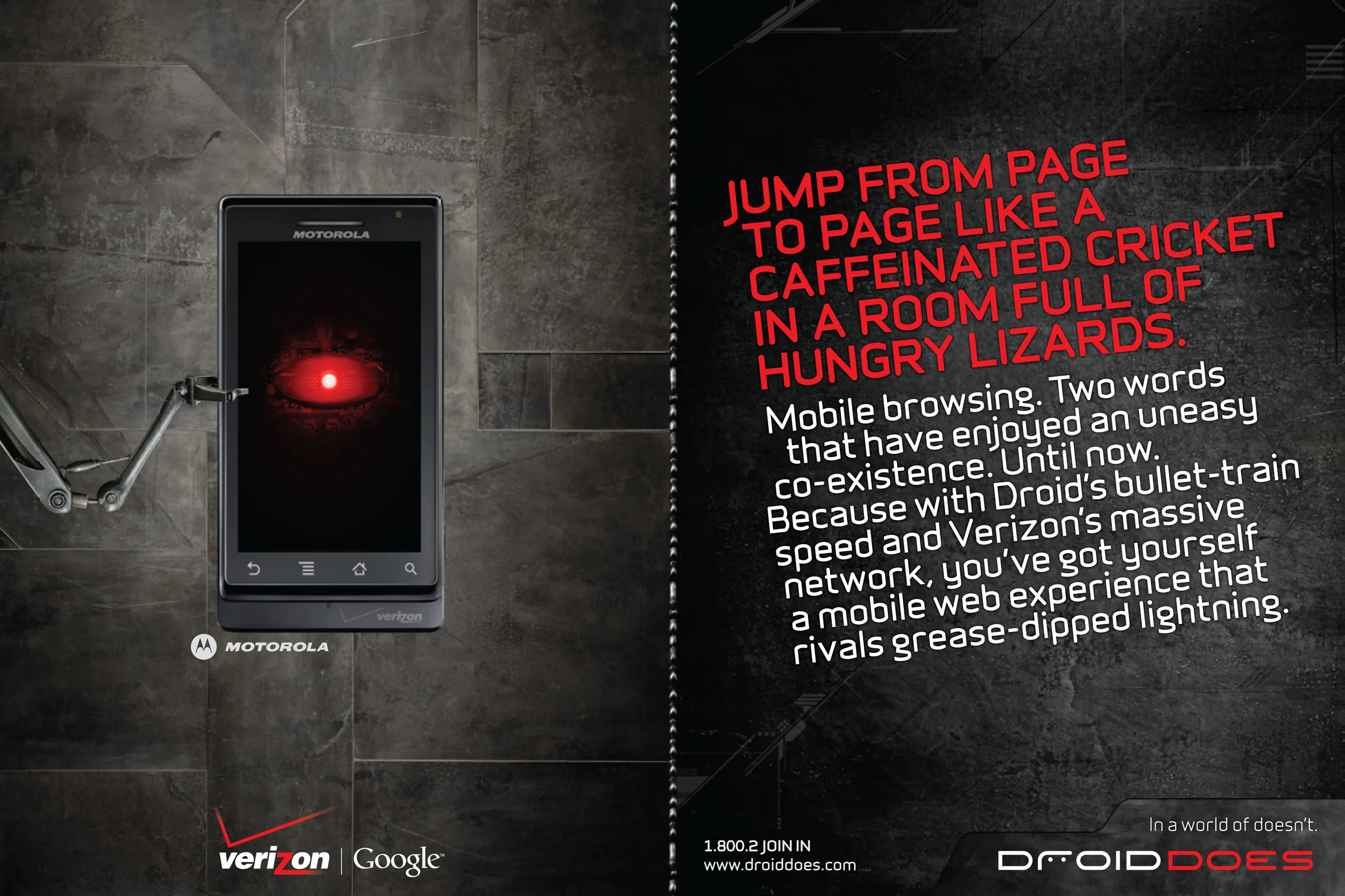 Our idea was pretty simple. To condense “Android” to the simpler and more telegraphic “Droid”. And to create a darkly powerful alternative universe to the ultra-bright, terminally cheerful iPhone world. Wired Magazine published an article detailing the launch here: