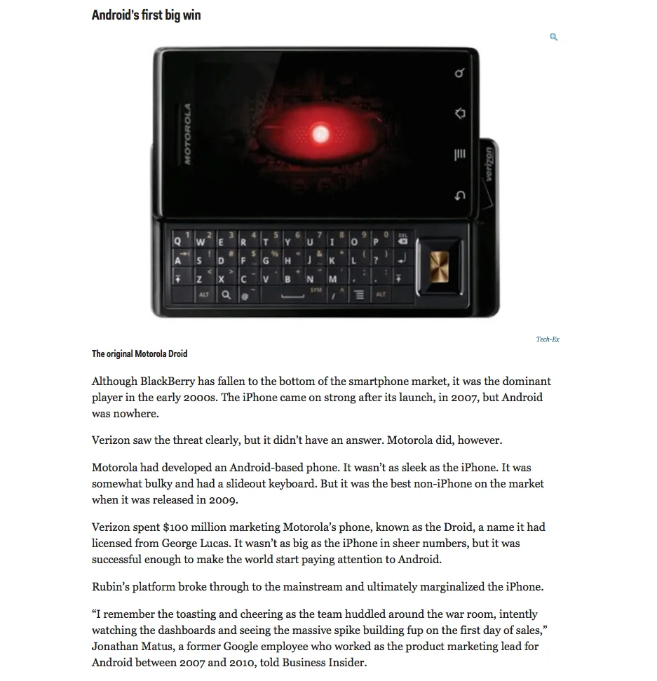 In March of 2015, Business Insider ran this article on the success of Android and Droid.